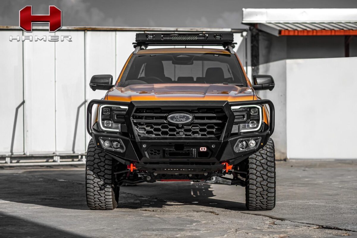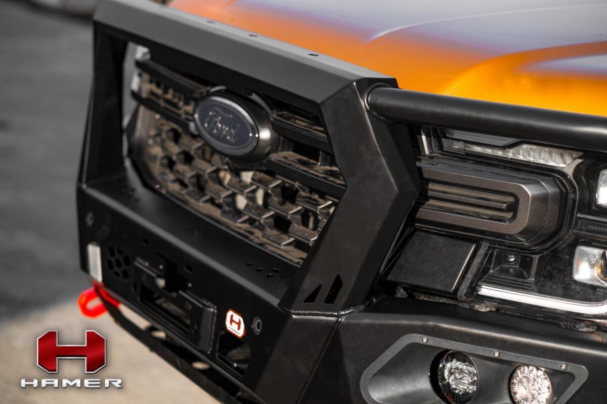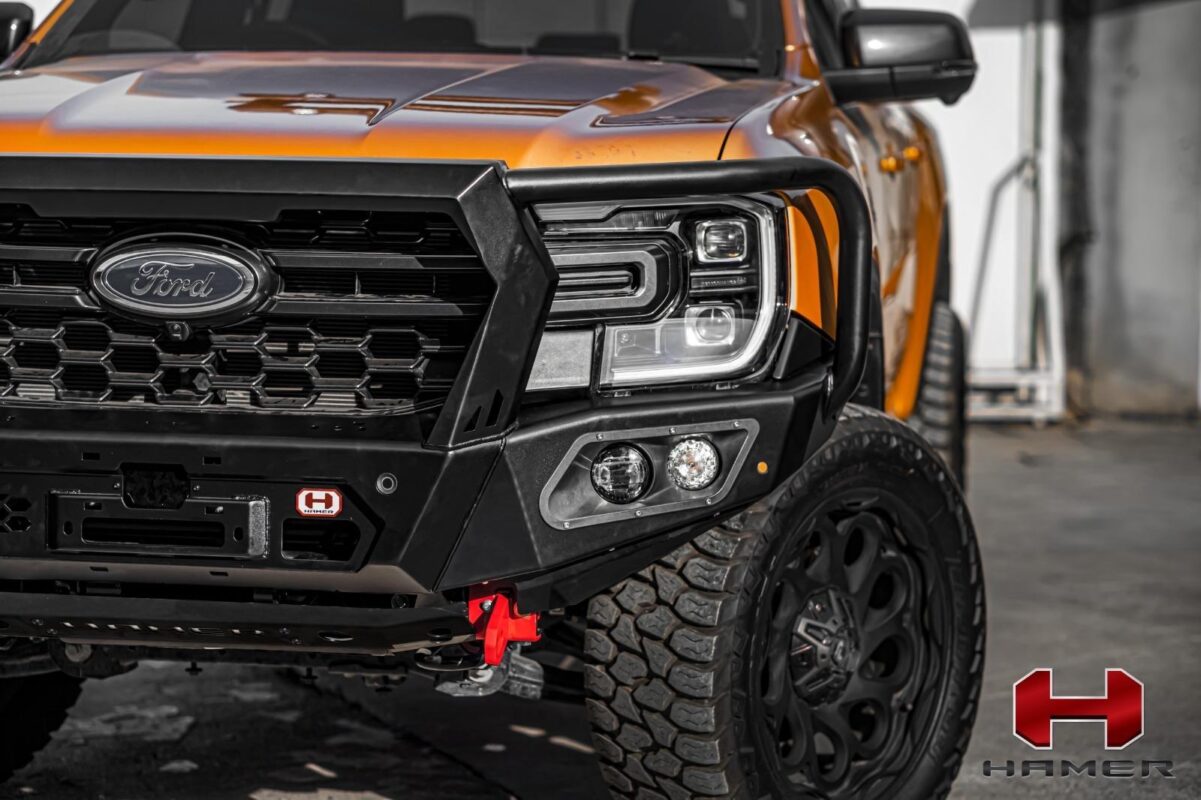 Introducing the Hamer King Series Bull Bar for Ford Ranger (2023 – Present). This bumper replacement bull bar is a testament to Hamer’s dedication to excellence in design and craftsmanship. Its sleek and integrated design not only adds a rugged look to your vehicle but also ensures optimum front-end protection during unforeseen events.